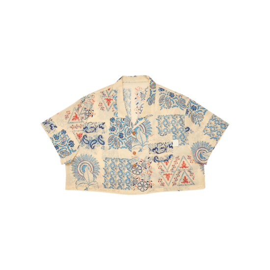 80S COTTON PATTERN SHORT SHIRT-IV.BL