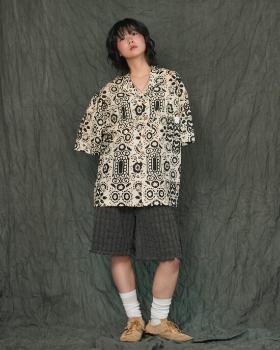 80S COTTON PATTERN SHORT SHIRT-IV.BK