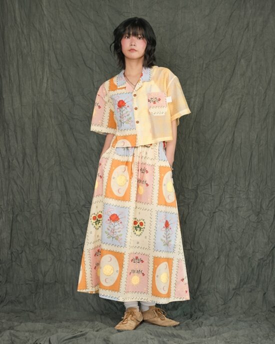 80S COTTON PATTERN SKIRT-YE
