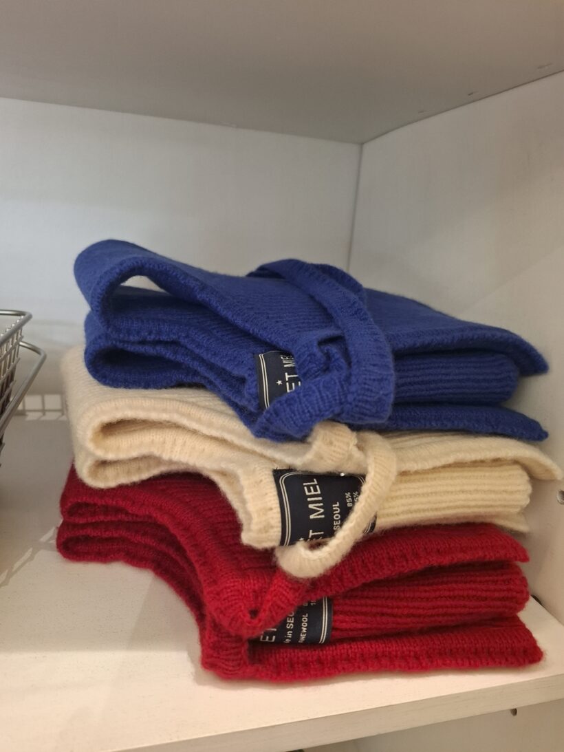 CARE: 使用洗衣機時,請務必使用羊毛清潔模式, 使用 <洗衣網> 單獨冷水洗, 避免將深色衣物與淺色衣物混合洗滌, 平鋪晾乾