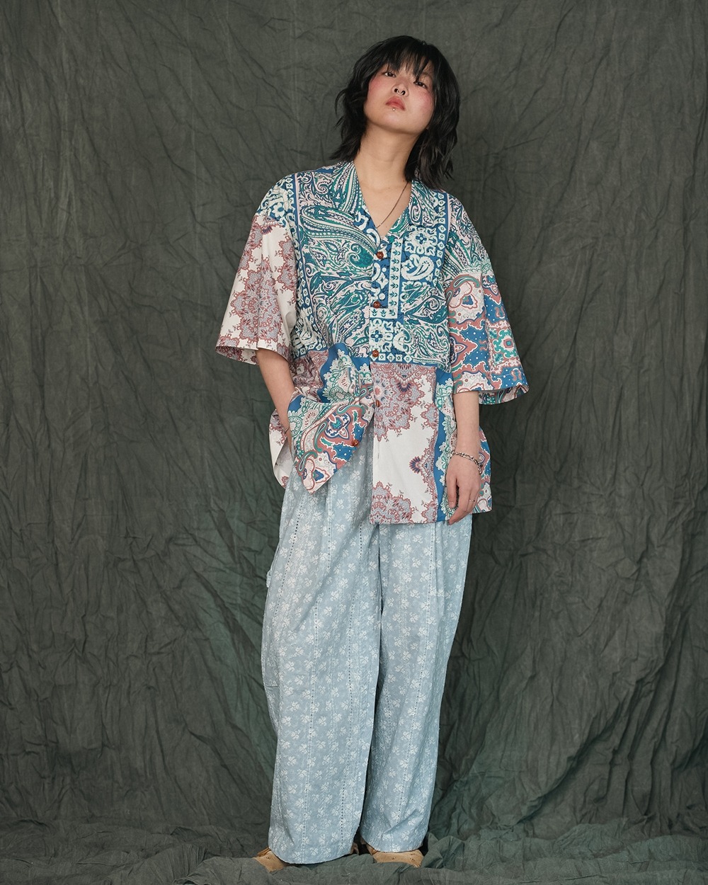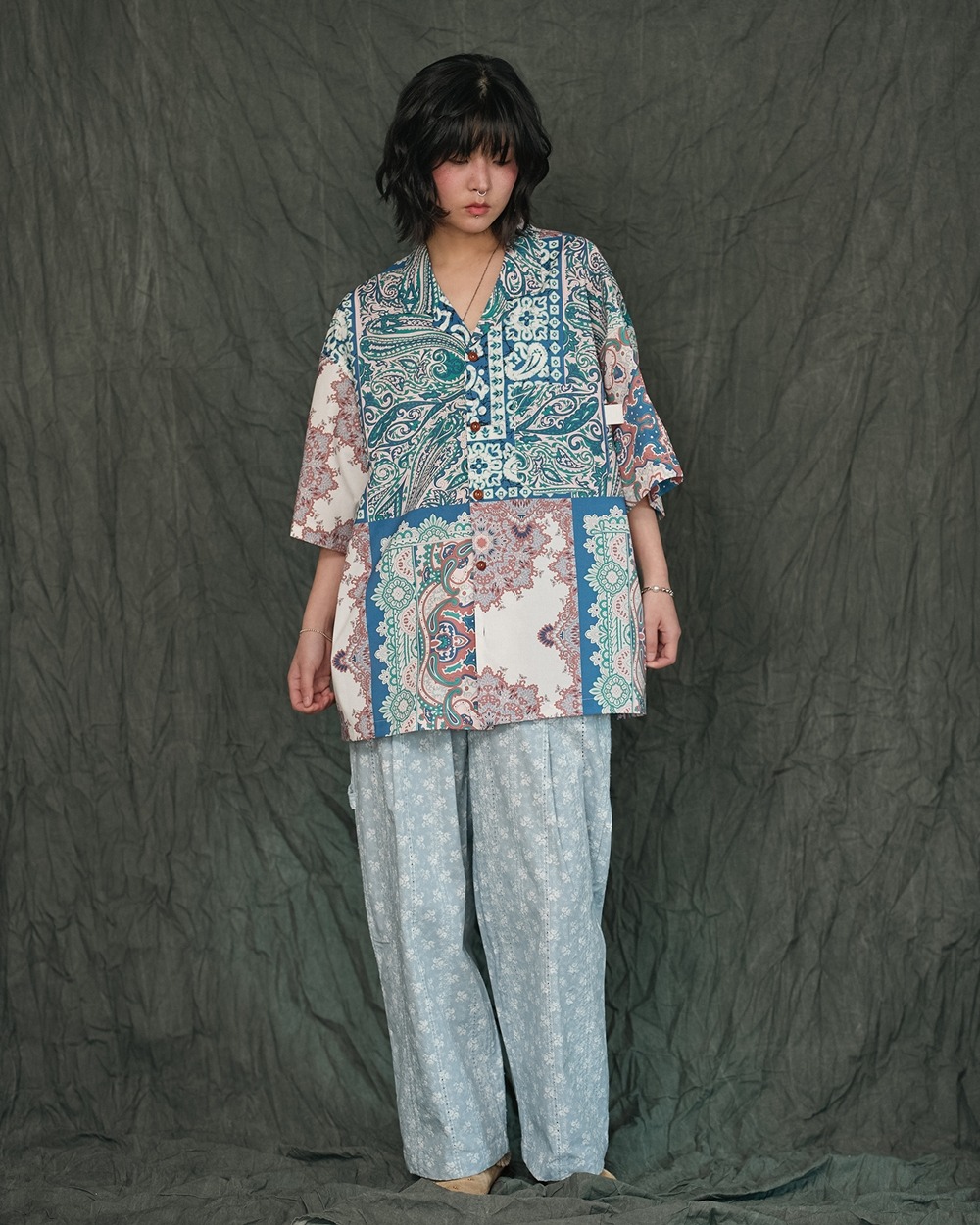 60S COTTON BANDANA HAWAIIAN SHIRTS-BL