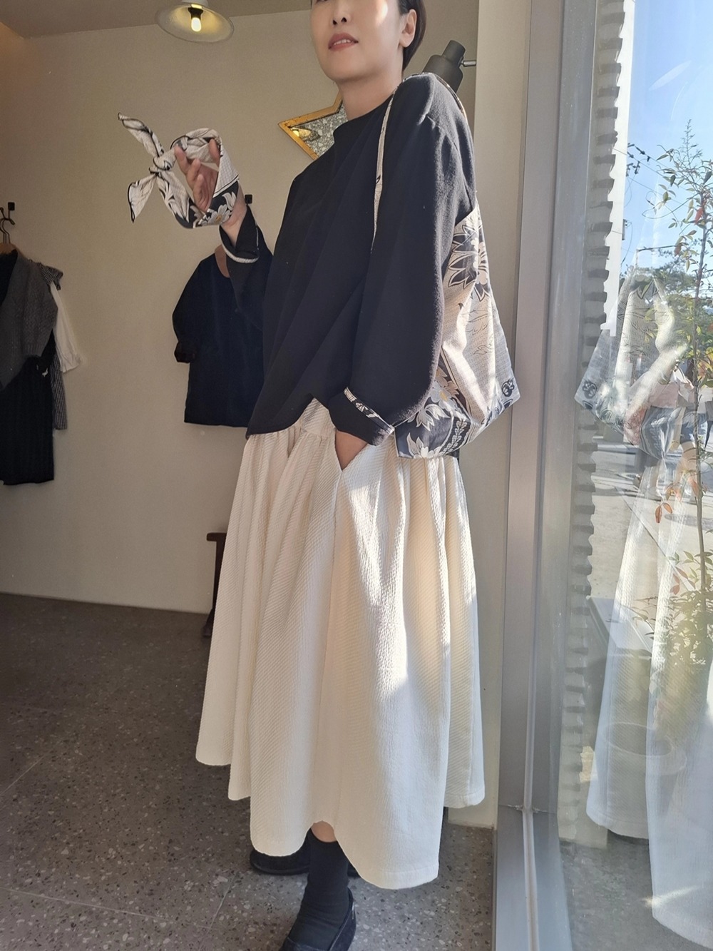 CLEAN BLOUSE (WAFFLE BLACK)