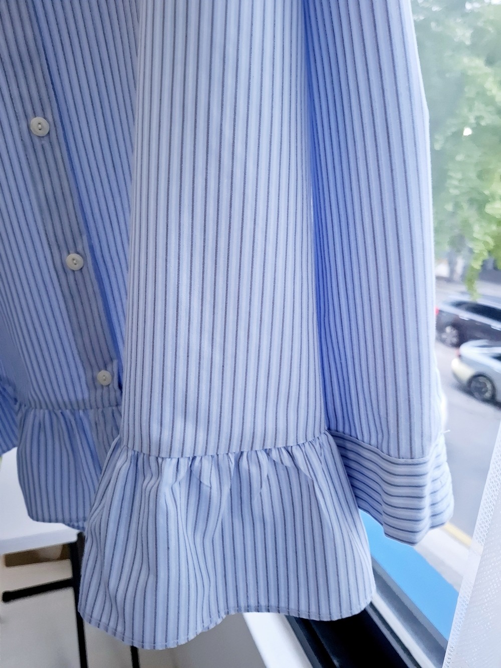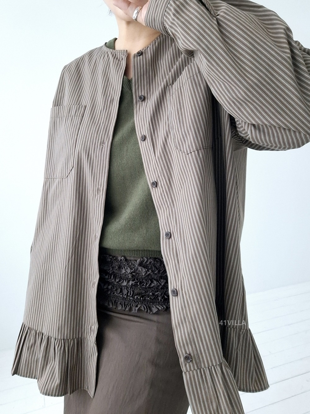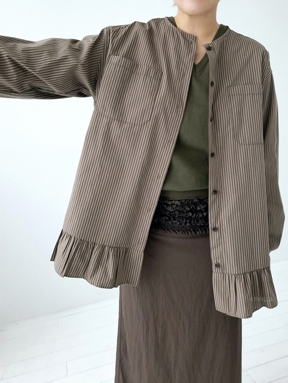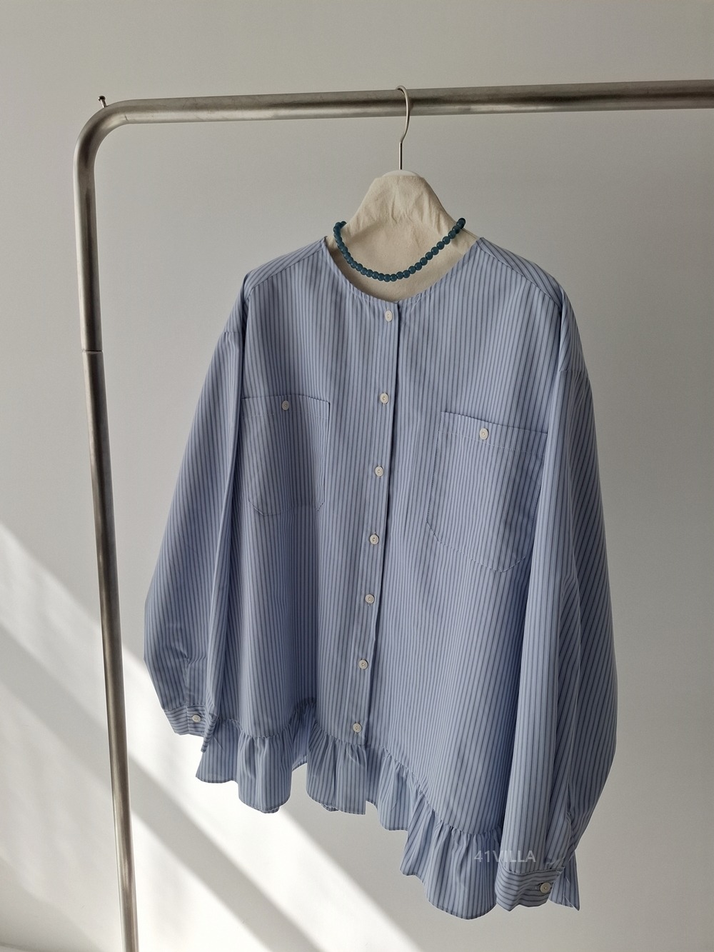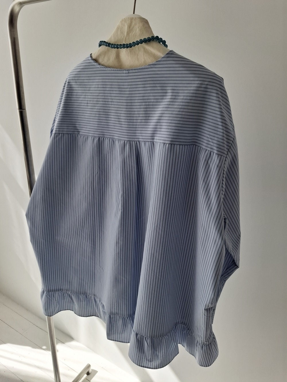 COLLARLESS STRIPED BLOUSE