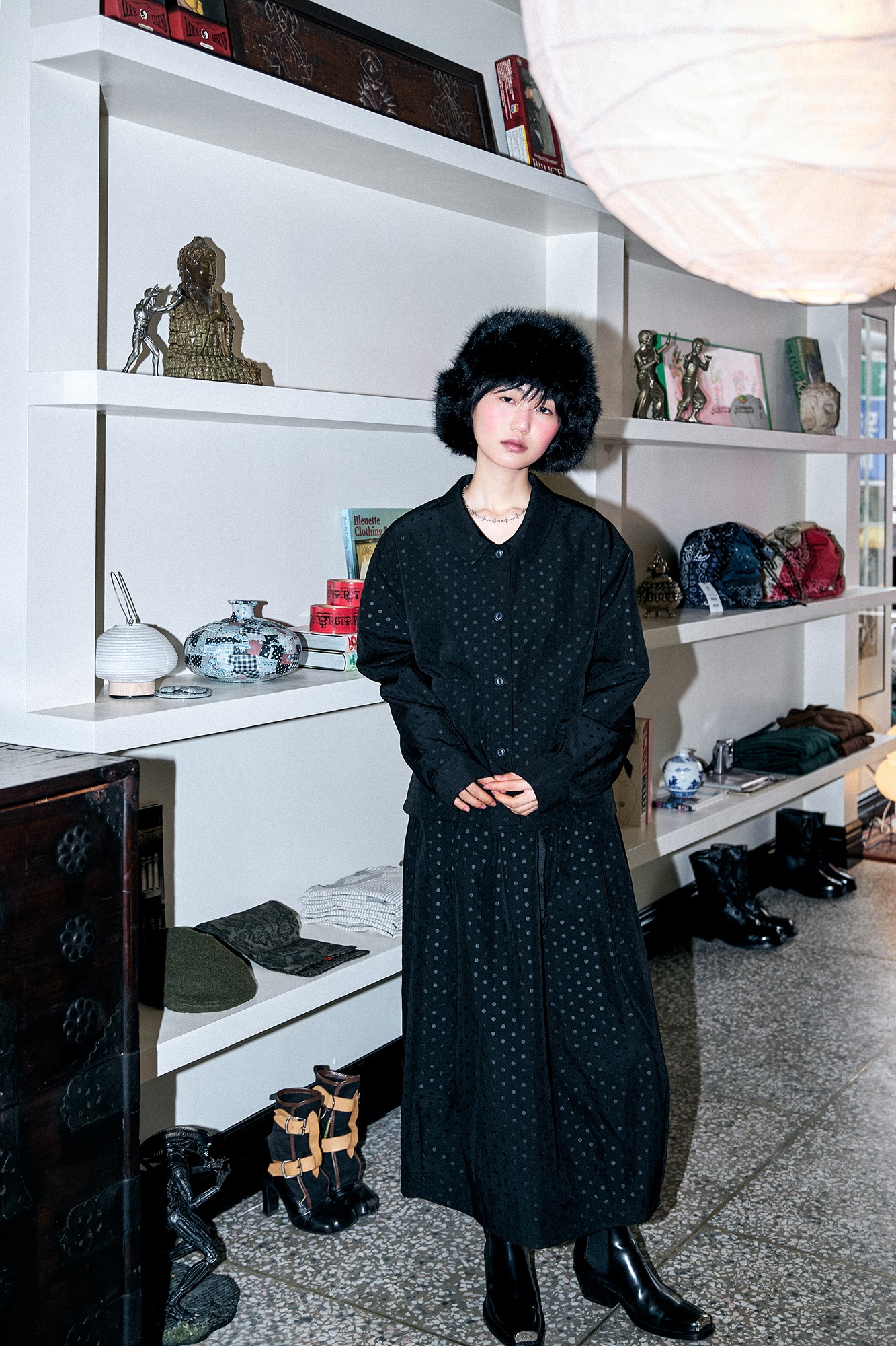 DOT PADDING BALLOON SKIRT-BK