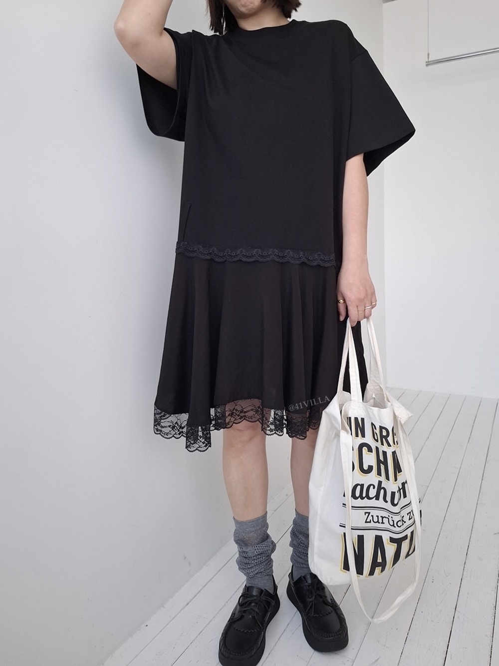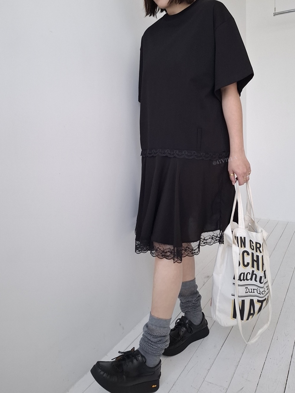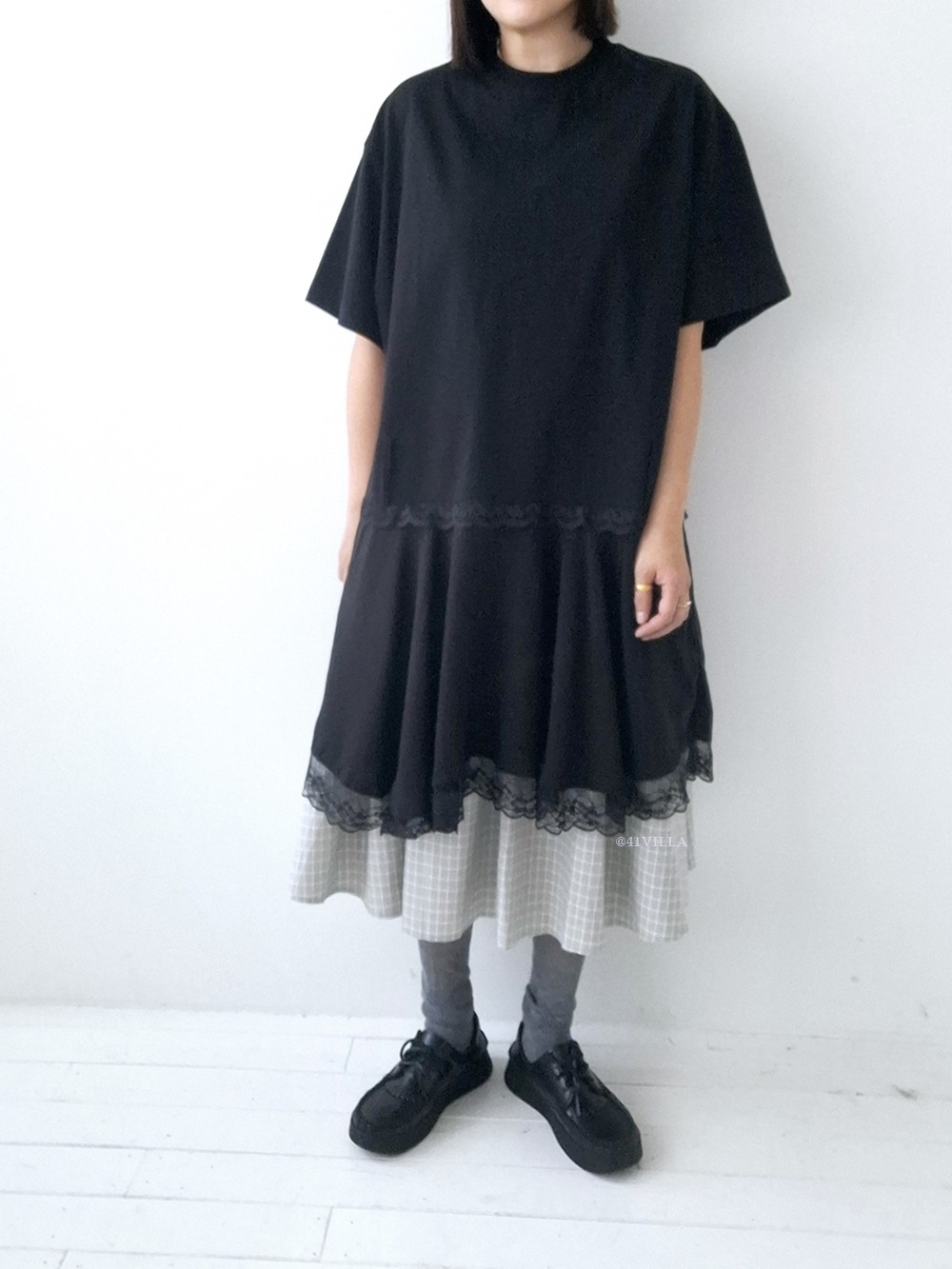 LACE HEM DRESS (BLACK)