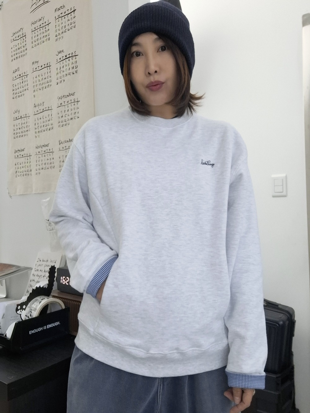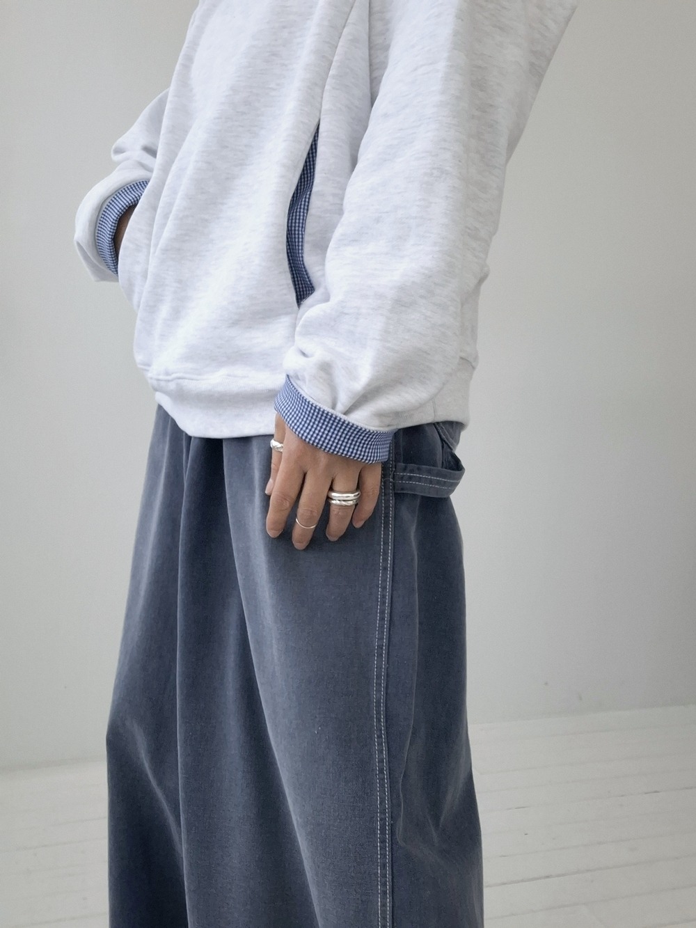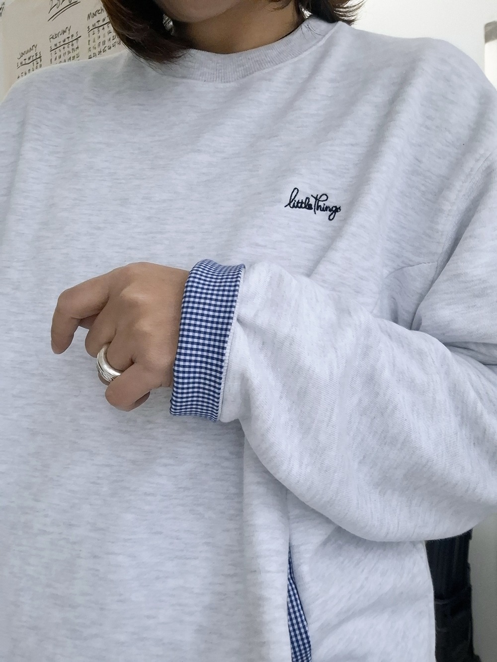 (SALE) CHECK CUFF COTTON SWEATSHIRT